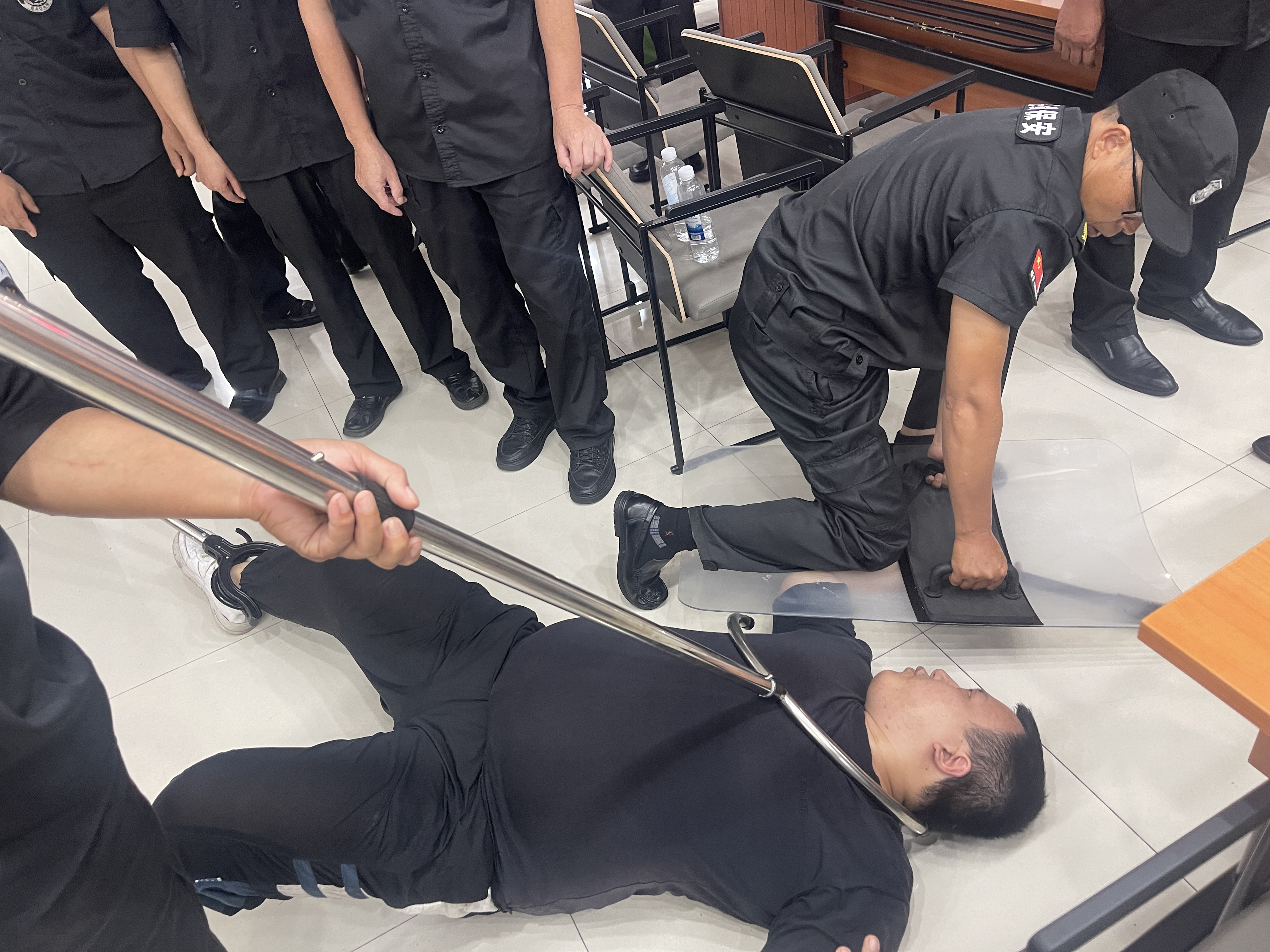 講座結(jié)束后,進(jìn)入到緊張而有序的軍體素質(zhì)及反恐防暴演練環(huán)節(jié)。在教官的嚴(yán)格指導(dǎo)下,保安人員進(jìn)行了隊(duì)列訓(xùn)練、體能訓(xùn)練等基礎(chǔ)軍體項(xiàng)目,通過(guò)訓(xùn)練,進(jìn)一步規(guī)范了動(dòng)作標(biāo)準(zhǔn),增強(qiáng)了身體素質(zhì)和團(tuán)隊(duì)協(xié)作能力。在反恐防暴演練中,模擬了突發(fā)暴力襲擊事件場(chǎng)景,保安人員迅速反應(yīng),按照預(yù)定預(yù)案,熟練使用防暴器械,密切配合,成功制服 “歹徒”,展現(xiàn)出了良好的應(yīng)急處置能力和實(shí)戰(zhàn)水平。