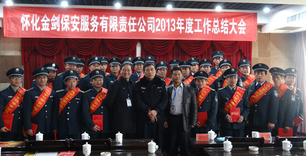 2014年元月18日上午10點整,明輝大酒店十樓會議會里莊嚴(yán)肅靜,懷化金劍保安服務(wù)有限責(zé)任公司2013年度總結(jié)表彰大會在這里隆重舉行。參加此次會議的有市公安局治安支隊內(nèi)保大隊科長翟群一、鶴城區(qū)教委綜合保衛(wèi)股股長周福喜、金劍保安公司總經(jīng)理向其華及各部門經(jīng)理、各網(wǎng)點班、隊長、被評為先進集體代表及先進個人。