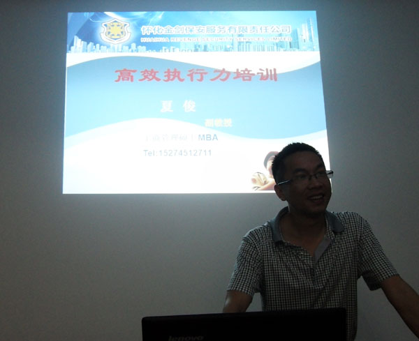 2015年5月29日上午,懷化金劍保安公司高薪聘請(qǐng)了工商管理碩士、懷化學(xué)院副教授夏俊老師在公司會(huì)議室為全體管理人員和部分班隊(duì)長(zhǎng)主講了“高效執(zhí)行力”的培訓(xùn)講座。